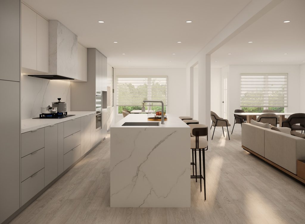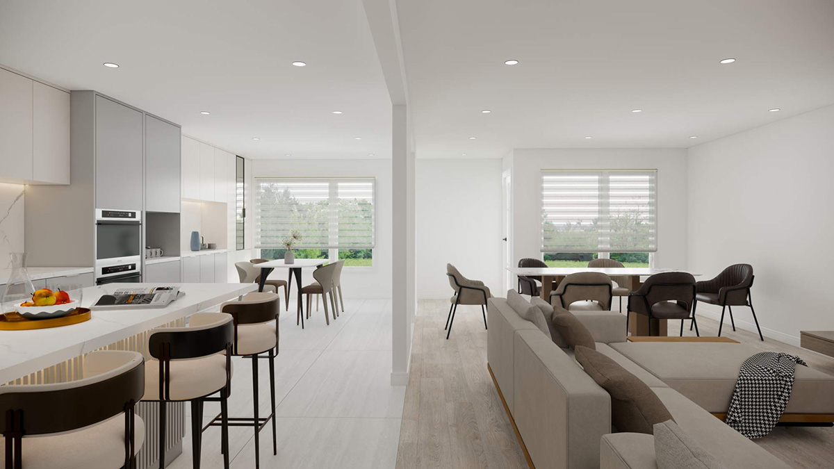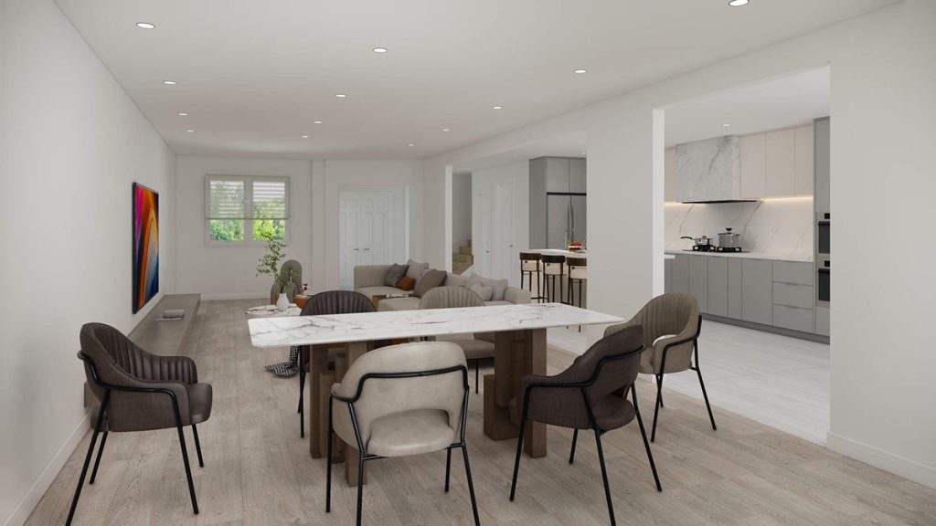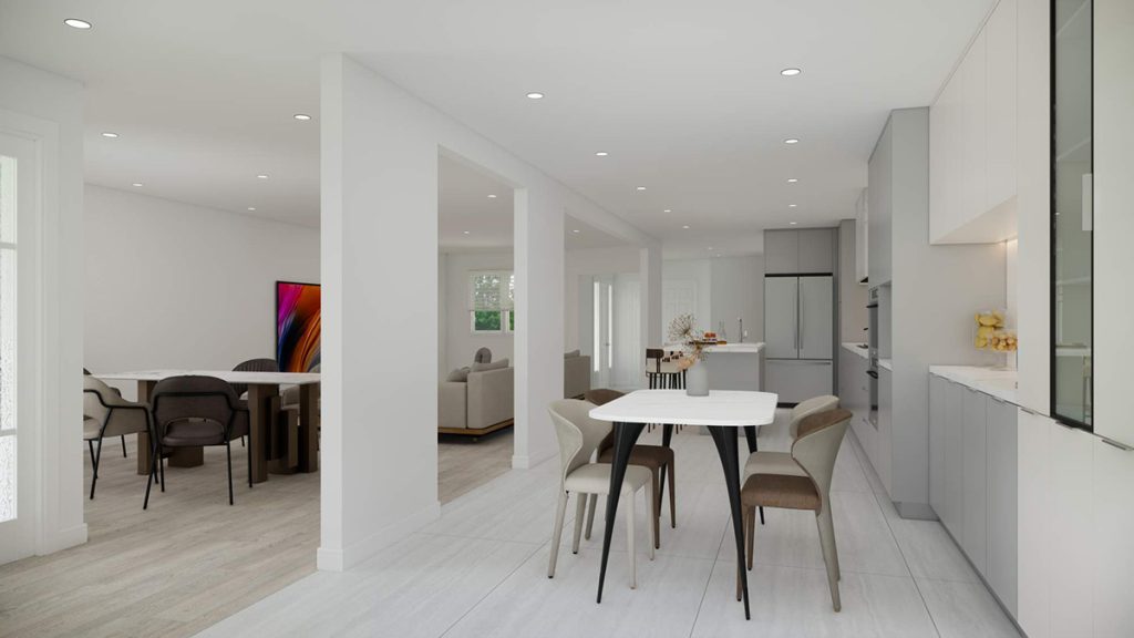 打通厨房与客餐厅之间的隔断,营造出流畅的开放式空间。将客厅地面升高至与厨房齐平,实现全屋地面的无缝衔接,使整体空间感更加开阔且统一。