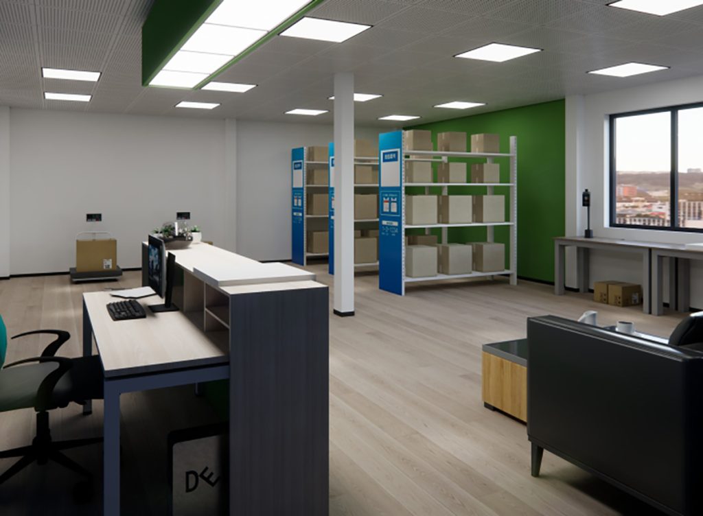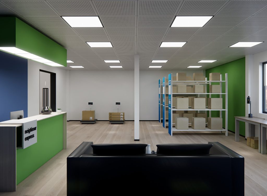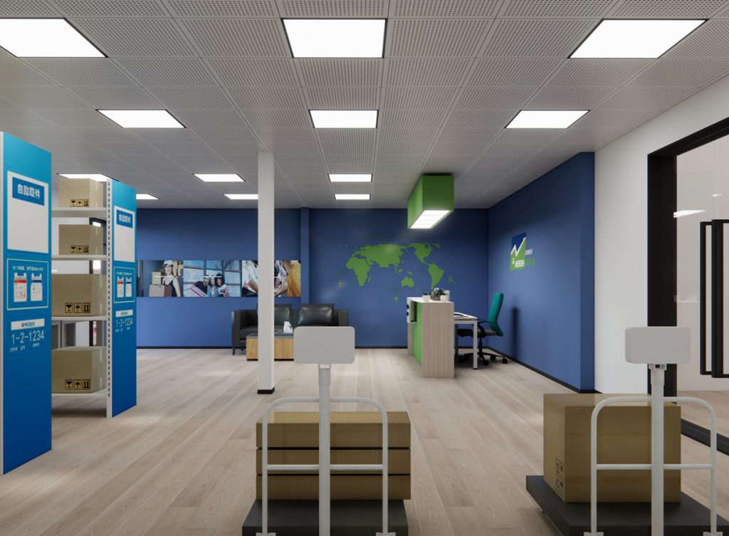 一站式快递门店设计。在满足业主预算与开业工期的前提下,整体设计以品牌标志色为基调,打造出鲜明且具冲击力的视觉识别系统,强化品牌辨识度。位于市中心的大型招牌带来了强烈的视觉影响力,提升了品牌曝光度并吸引公众关注。
