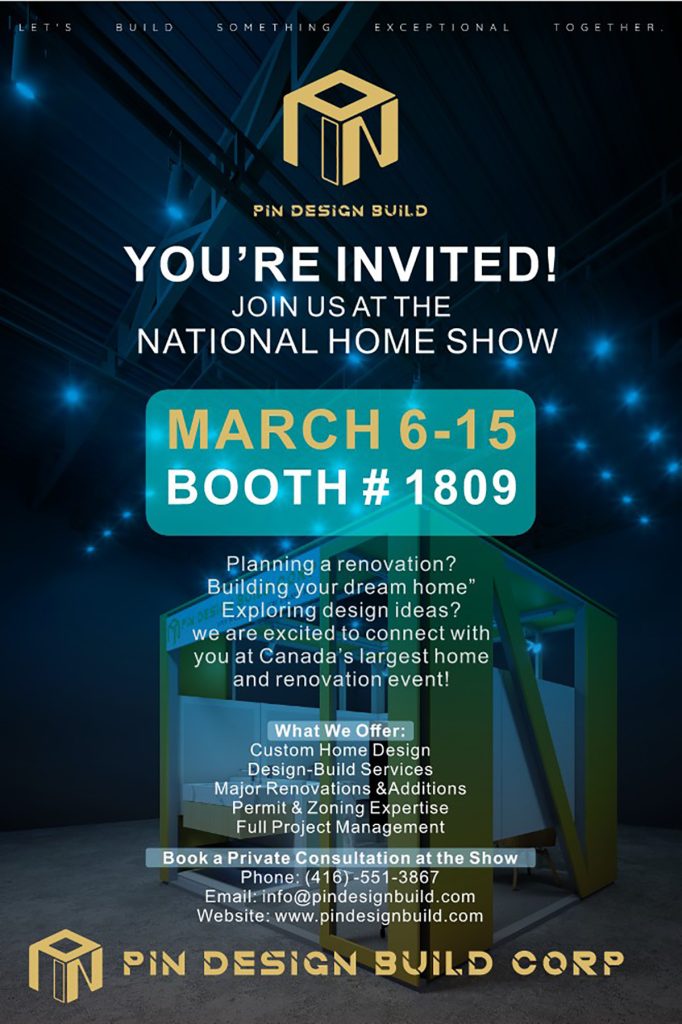 PIN Design & Build Corp. 将参加 2026 National Home Show(3月6日–15日,Enercare Centre),诚邀您莅临 1809号展位参观交流。