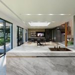 设计方案整合现有结构,保留50%的外墙,同时扩建地下室、后部和二楼。 以增加可用面积。利用基础技术,地下室的加建无缝连接新空间和现有空间。 外部采用了黑色面砖、各种图案的混合的雪松木,在社区内营造了一种谦逊的美感。 现代材料和花坛打造出宜人的前廊。 室内通过超大窗户和引人注目的 27英尺中庭(带三重天窗)来强调自然光,营造出一个沐浴在阳光下且充满活力的生活空间。