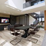 房子的后面面朝峡谷,原来的房子是一个2000平方英尺的4居室后分体。 然而,没有一间卧室面向峡谷。 经过重新设计,保留了原来的基础,但拆除了屋顶,在后面和二楼增加了一层,总共形成了七个交错的空间。 空间布局巧妙,入口处设有22英尺的中庭,一进门就增添了宏伟的感觉。 其他设施包括无障碍电梯、双层高用餐空间、观景窗等等。