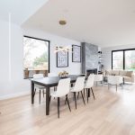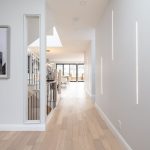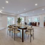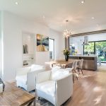 Renovation: 2300 sqft renovation旧房改造工程。首层八尺净高,梁底不到八尺,分割成几个小空间。根据结构工程师计算,拆除承重墙,把LVL升高到楼板之间。重新换木地板,装射灯,翻新后变身无阻隔大空间。梁底升高,视线开阔。这是在预算不多的情况下,投入最出效果的地方。