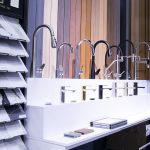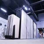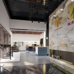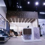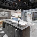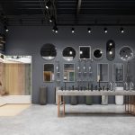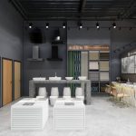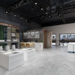 展厅将原来旧展厅墙打开,天花拆除,在空间上分为不同材料板块。将销售的产品融入不同的场景,展示潮流,美感十足的材料,也给买家展示范例。